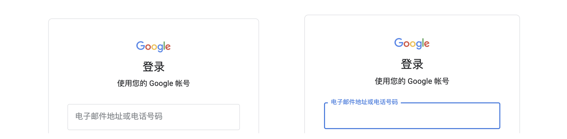 ▲ 图片来自Google 登陆流程(左:默认状态;右:激活状态)